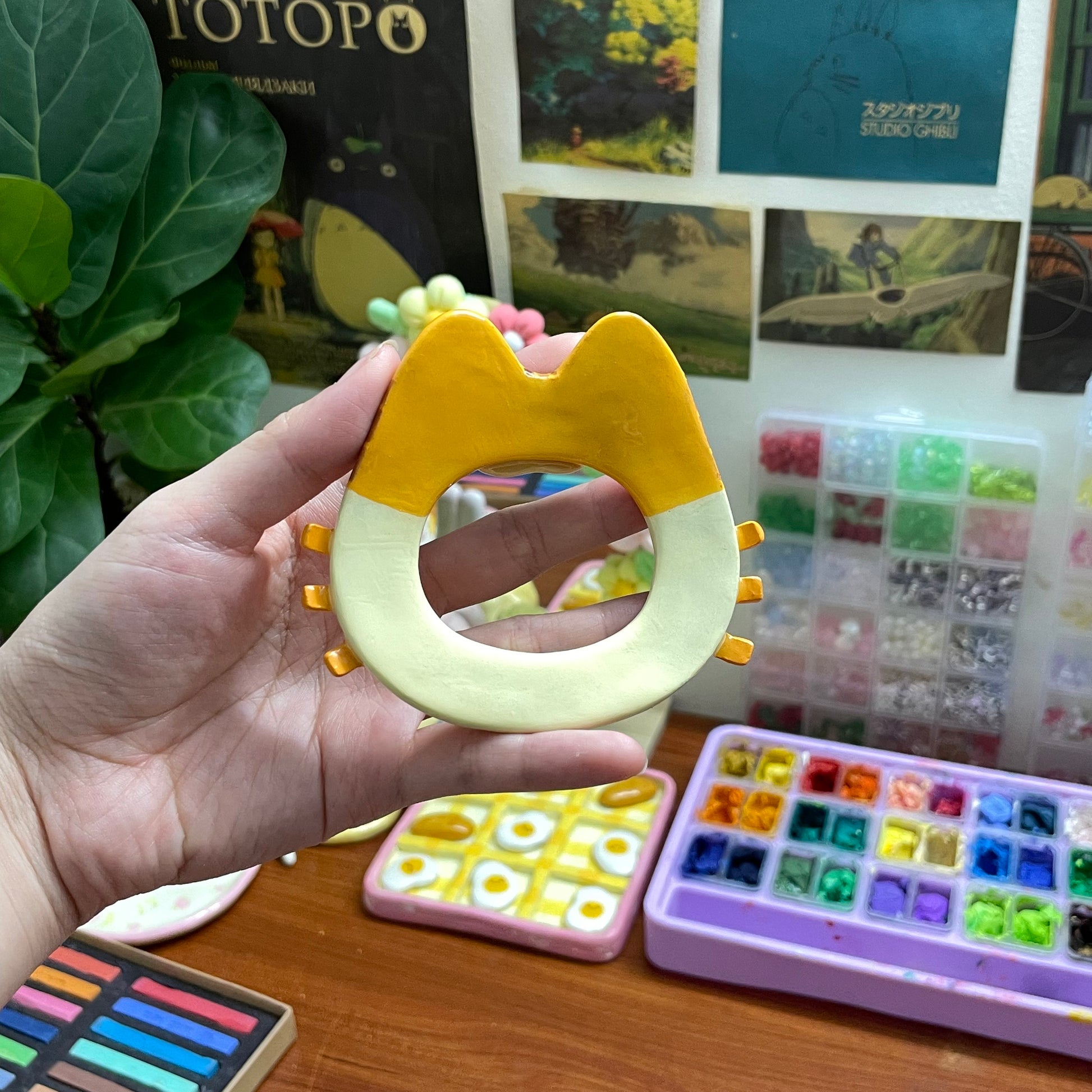 - Materials: Made from DAS air-dry clay, carefully hand-painted with gouache, and sealed with a glossy top coat gel and UV resin for extra durability and shine.