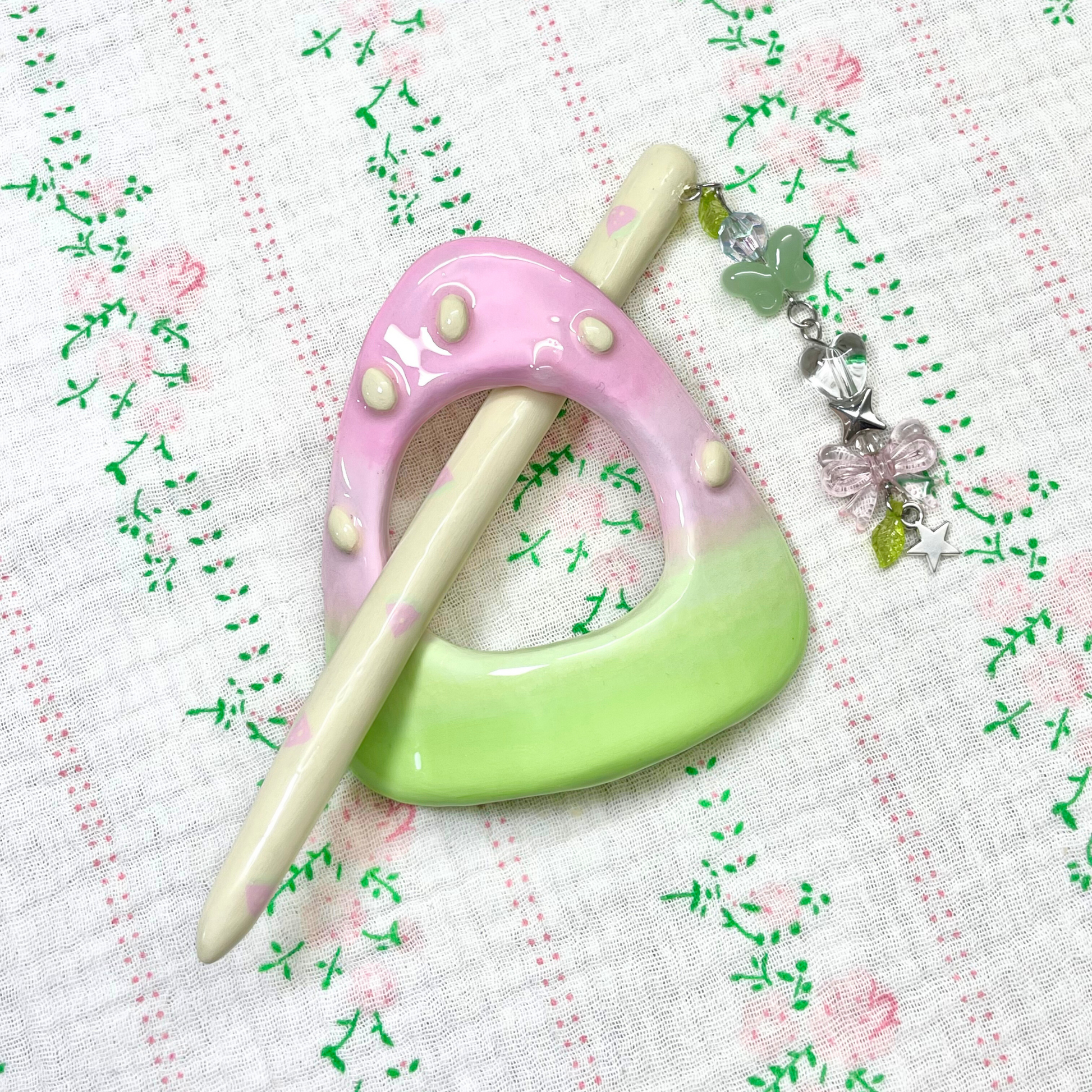 A juicy pop of summer – Fresh green and playful pink come together in this watermelon-inspired brooch, perfect for sunny days and sweet moods. This handmade hair brooch is sweet, and full of charm, perfect for adding a dash of cuteness to any look!