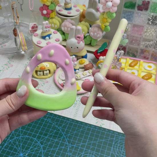 - Materials: Made from DAS air-dry clay, carefully hand-painted with gouache, and sealed with a glossy top coat gel and UV resin for extra durability and shine.